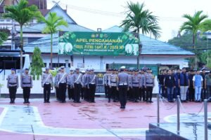 Indragiri Hilir Riau ||lint@sdesanews– Dalam rangka memastikan keamanan dan kelancaran pelaksanaan Pawai Malam Takbir Idul Fitri 1447 Hijriyah Tahun 2026, Polres Indragiri Hilir menggelar Apel Persiapan Pengamanan dan Pengaturan Lalu Lintas, Jumat (20/3/2026) sore.