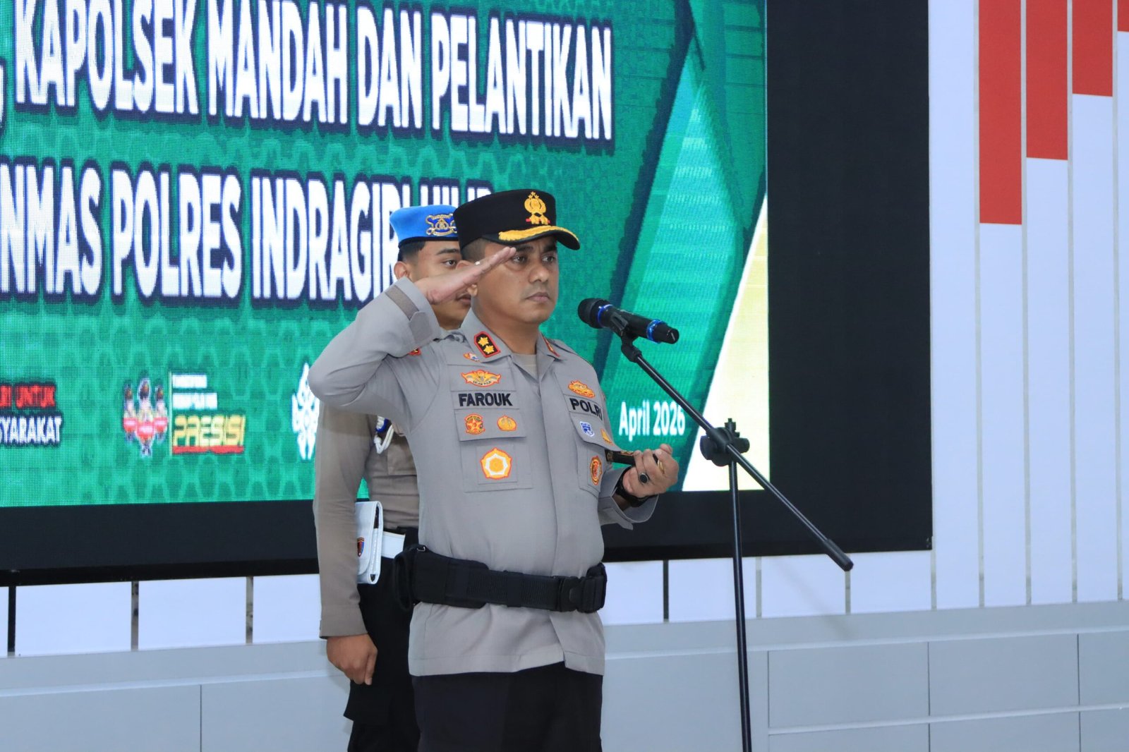 Indragiri Hilir Riau||Lint@sdesanews– Polres Indragiri Hilir melaksanakan upacara serah terima jabatan (sertijab) Kabaglog dan Kapolsek Mandah serta pelantikan Kasat Binmas pada Kamis (9/4/2026) pagi. Kegiatan tersebut berlangsung di Aula Tribrata Polres Indragiri Hilir sekitar pukul 08.00 WIB.