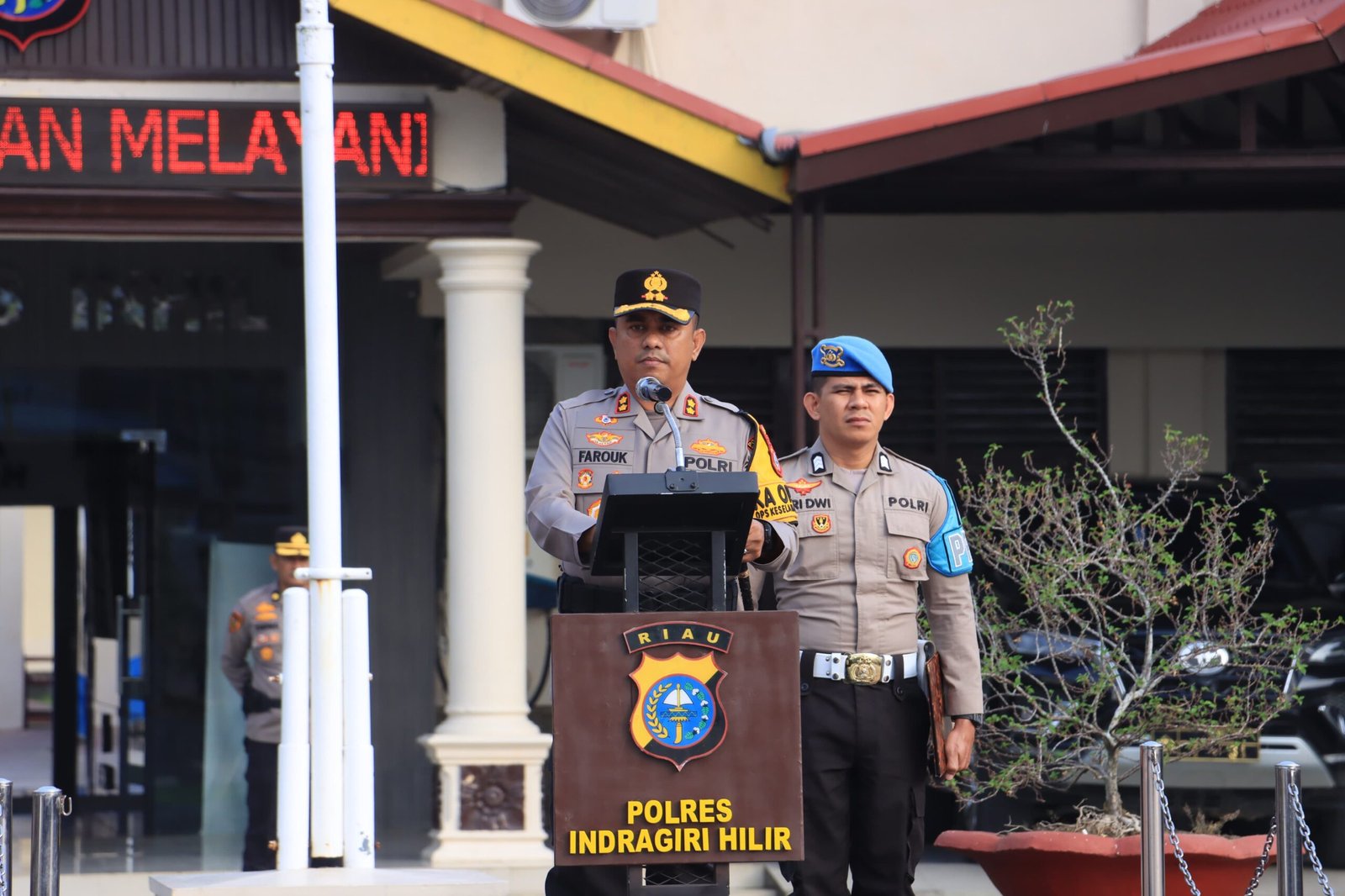 Upacara tersebut dipimpin langsung oleh Kapolres Indragiri Hilir, AKBP Farouk Oktora, S.H., S.I.K., dan dihadiri oleh Wakapolres Indragiri Hilir Kompol Maitertika, S.H., M.H., para Kabag, Kasat, Kasi, perwira, bintara serta ASN Polres Indragiri Hilir.