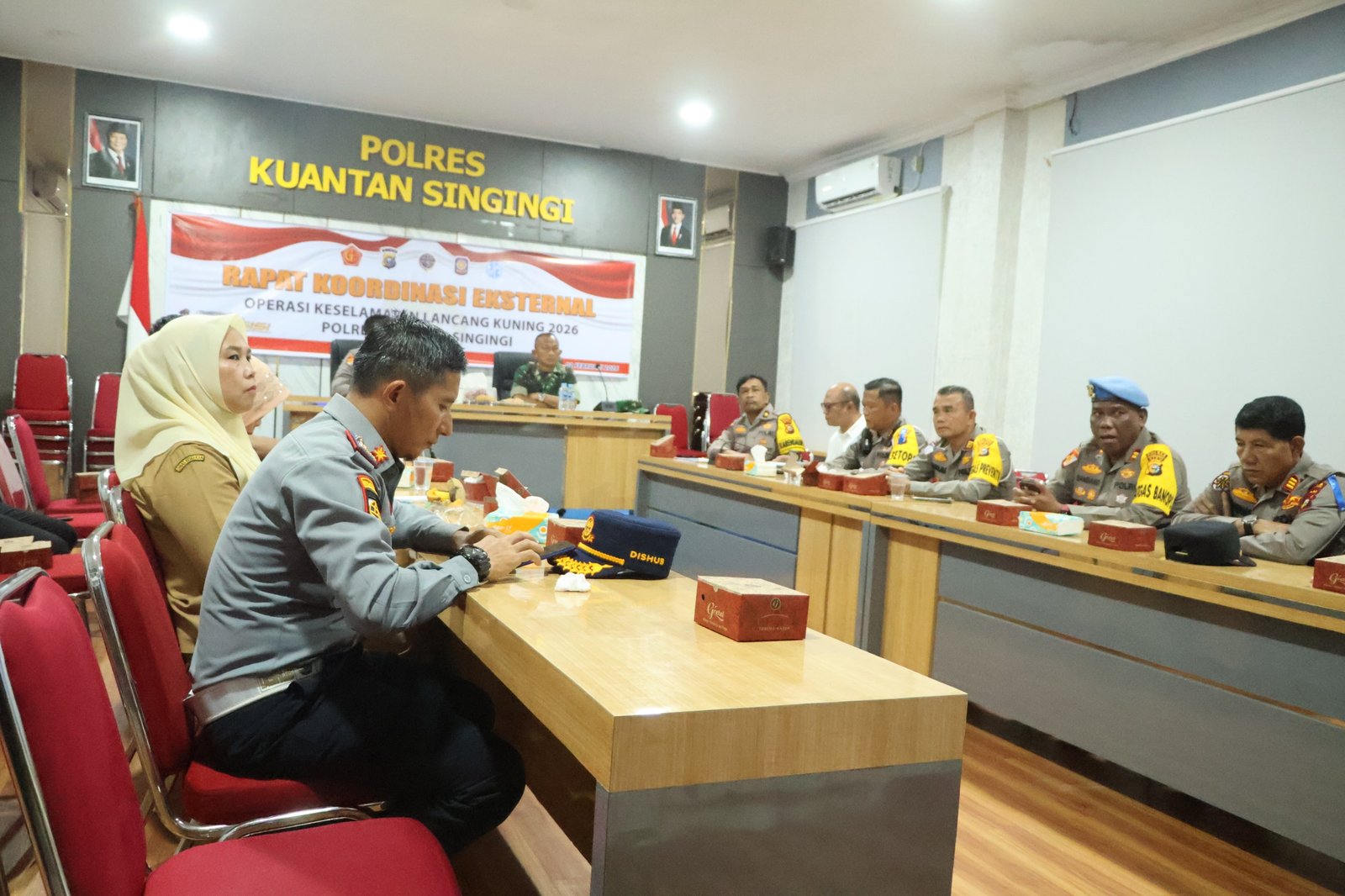 Rakor Eksternal ini turut dihadiri oleh Kabag Ops Polres Kuansing KOMPOL A. Raymon Tarigan, S.H., M.H., Pabung Kodim 0302 Inhu–Kuansing MAYOR Inf Legimin, perwakilan Dinas Perhubungan, Satpol PP, Dinas Kesehatan Kabupaten Kuantan Singingi, Jasa Raharja, serta para pejabat utama Polres Kuansing.