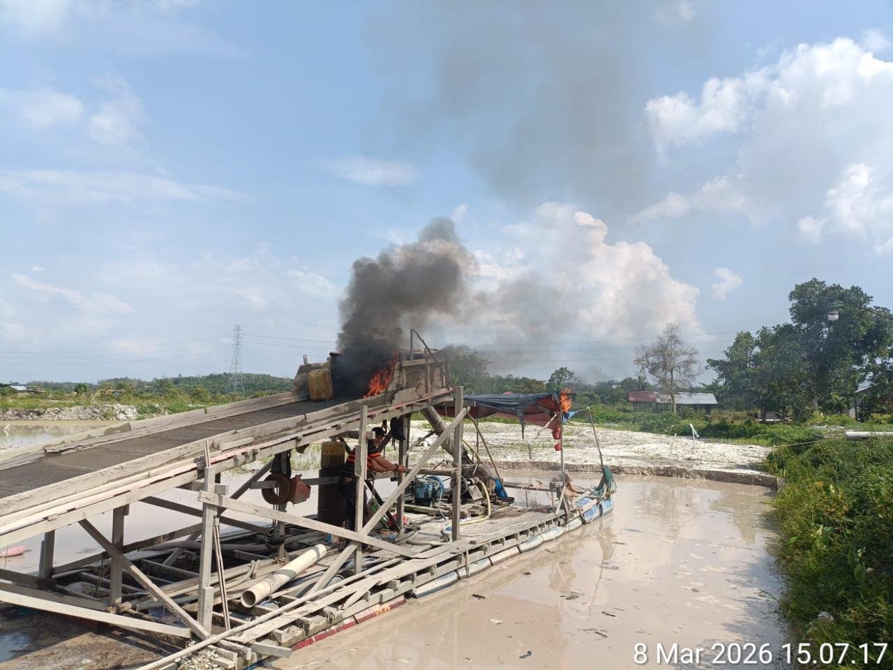 “Di lokasi ditemukan tiga unit rakit PETI yang tidak sedang beraktivitas. Untuk mencegah agar tidak kembali digunakan, personel langsung melakukan tindakan tegas berupa pengrusakan dan pemusnahan dengan cara dibakar,” jelas IPTU Gerry.