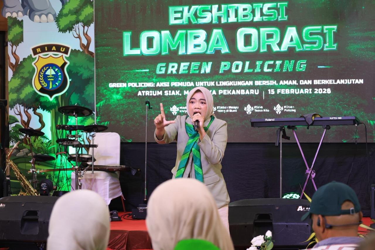 Pekanbaru Riau||lint@sdesanews– 16 februari 2016. Polda Riau telah menyelesaikan Ekshibisi Lomba Orasi Green Policing 2026, agenda puncak diselenggarakan di Atrium Mal SKA Pekanbaru, Minggu (15/2/2026) dengan tema ‘Aksi Pemuda untuk Lingkungan Bersih, Aman, dan Berkelanjutan’.